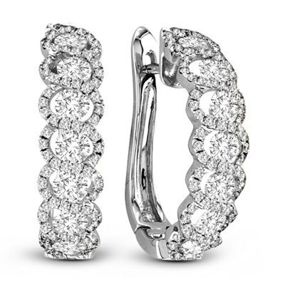 These impressive diamond earrings are in 18K white gold. The diamonds have a total carat weight of 1.88 carats. These earring are one of a kind. Don’t miss out! Natural Diamond Specifications: Count: (154) diamonds. Shape: Round , TCW: 1.88 ct. , Color: G-H , Clarity: SI-1 / SI-2. Gold Weight: 3.39 Grams