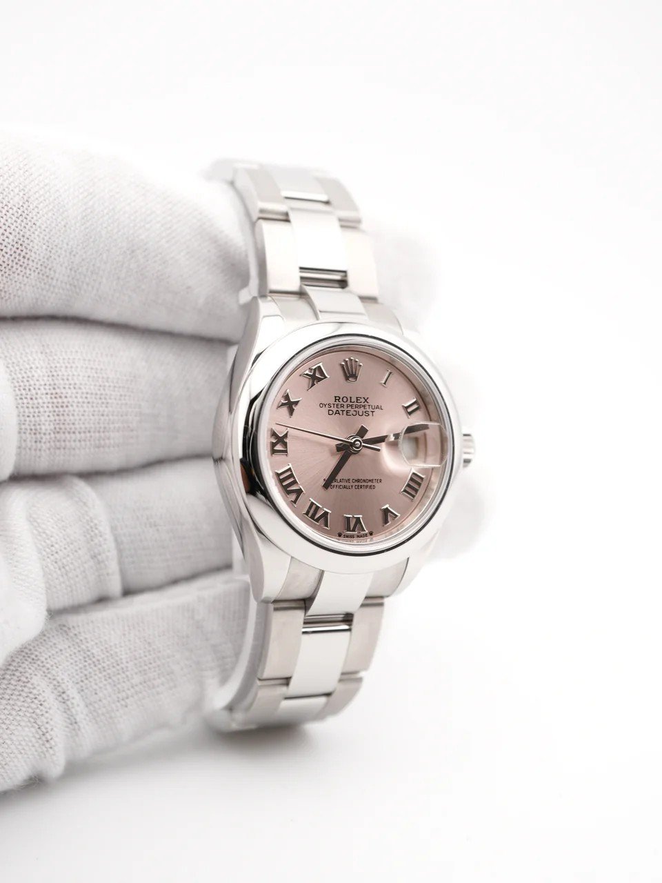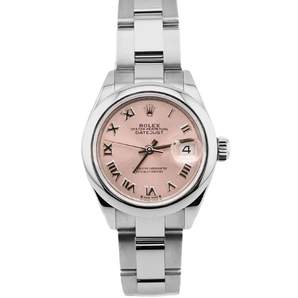 Rolex 279160 Lady-Datejust 28 mm Smooth Bezel Pink Roman Dial Oyster Bracelet Box and Papers