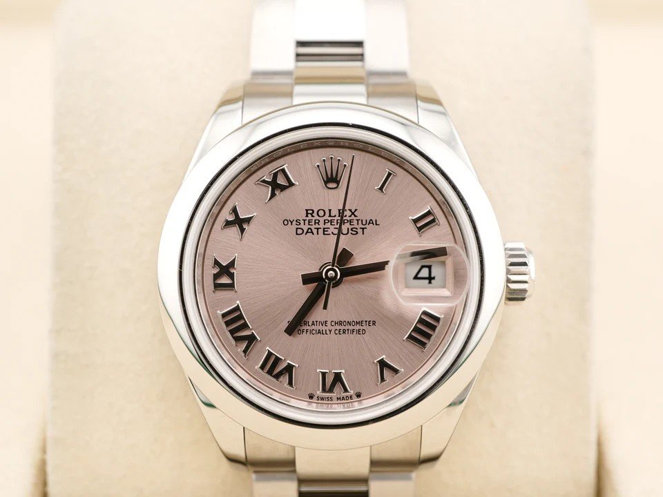 Be the first to review “Rolex 279160 Lady-Datejust 28 mm Smooth Bezel Pink Roman Dial Oyster Bracelet Box and Papers”